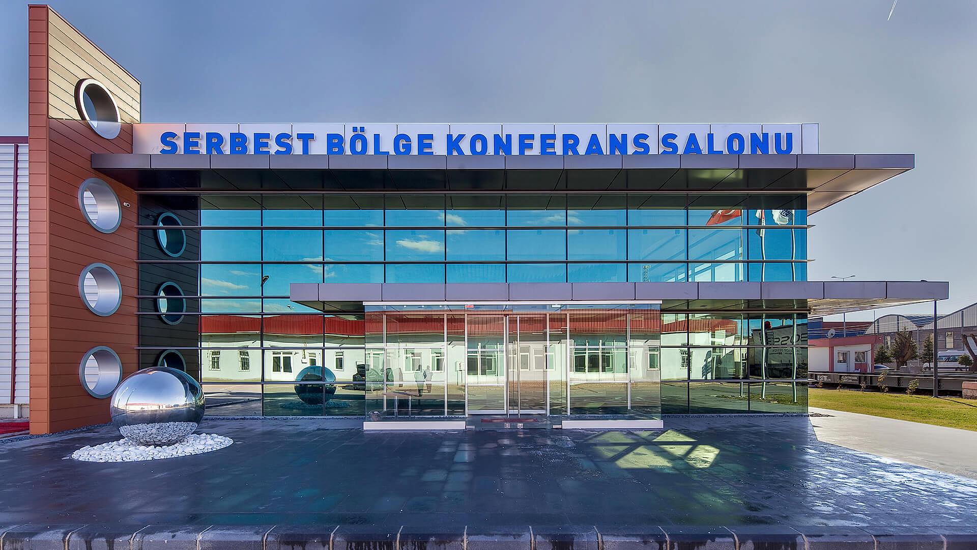 We designed a conference hall with a 1500 m² usable area for the closed hangar parts in the Kayseri Free Zone. The sound ambience is very high quality and the stage is given a good slope so that all the audience can see the viewing angles clearly. Thanks to the design made to the sound echo, the reverberation and circulation of the sound are optimized. It is an exemplary hall where the free zone’s seminar and conference are held.